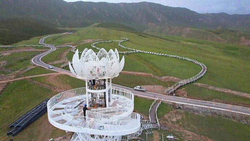 除此之外,夏秋季二級游客服務驛站、蓮花觀景塔正在加速建設當中。服務驛站建筑面積6600平方米,其中步步高升踏步平臺2400平方米,游客服務驛站2200平方米(2棟2層)。蓮花觀景塔高16.6米,觀景平臺面積76平方米。目前,項目主體結構已經初具規模,建成后,將成為產業園又一道獨特的風景線,為游客提供一個遠眺美景的絕佳視角,帶來獨特的觀賞體驗,進一步提升當地知名度和美譽度。