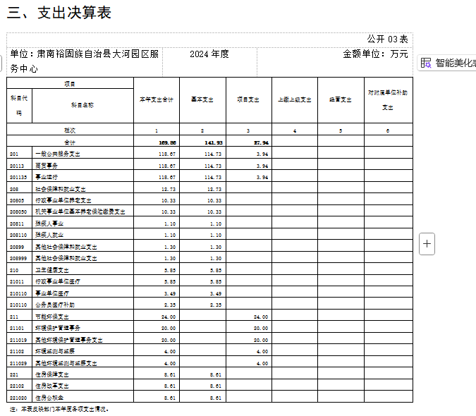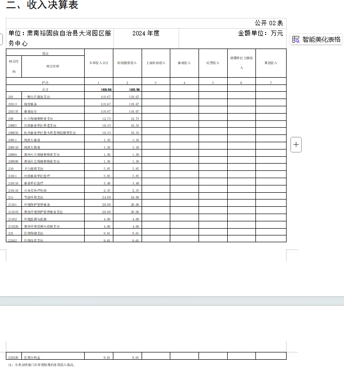 由于決算公開(kāi)表格中金額數(shù)值應(yīng)當(dāng)保留兩位小數(shù),公開(kāi)數(shù)據(jù)為四舍五入計(jì)算結(jié)果,個(gè)別數(shù)據(jù)合計(jì)項(xiàng)與分項(xiàng)之和存在小數(shù)點(diǎn)后差額,特此說(shuō)明。