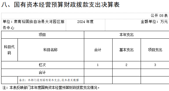 八、國(guó)有資本經(jīng)營(yíng)預(yù)算財(cái)政撥款支出決算表