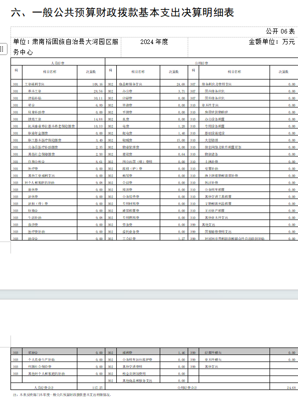 六、一般公共預(yù)算財(cái)政撥款基本支出決算明細(xì)表
