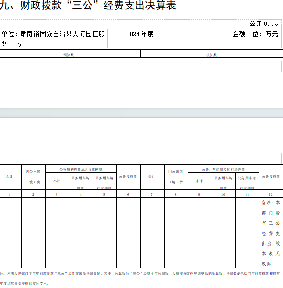 九、財(cái)政撥款“三公”經(jīng)費(fèi)支出決算表