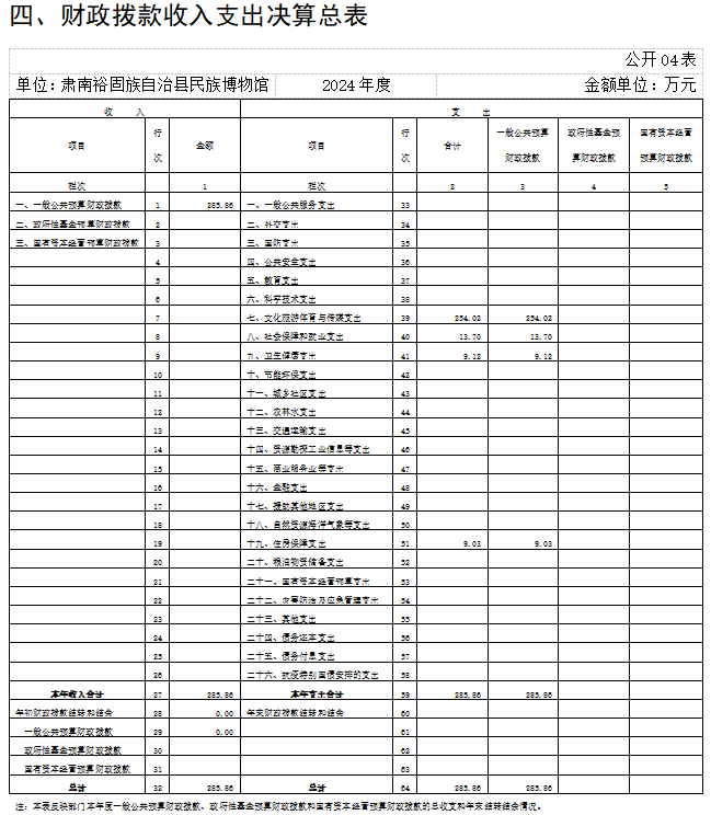 由于決算公開表格中金額數值應當保留兩位小數,公開數據為四舍五入計算結果,個別數據合計項與分項之和存在小數點后差額,特此說明。