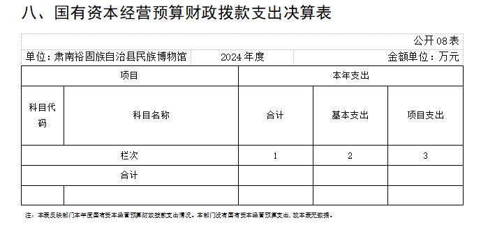2024年度國有資本經營預算財政撥款本年支出0.00萬元。