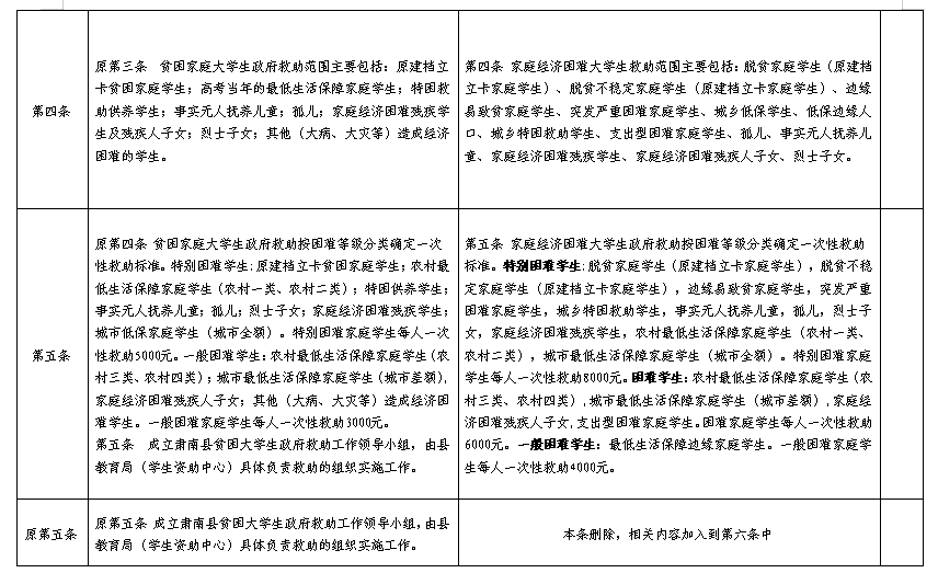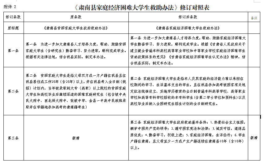 大學生救助辦法自2009年實施以來,在激勵我縣學生勤奮學習、刻苦鉆研、促進綜合素質提升等方面發揮了積極的作用,得到了社會家長的高度贊譽。2020年10月13日,中共中央、國務院印發了《深化新時代教育評價改革總體方案》,強調扭轉不科學的教育評價導向,堅決克服唯分數、唯升學、唯文憑、唯論文、唯帽子的頑瘴痼疾,不得通過任何形式以中高考成績為標準獎勵教師和學生。該《辦法》個別條款與《總體方案》精神不相符,故對2021年印發的《肅南縣大學生獎勵及救助辦法》部分條款進行了修訂、補充和完善。