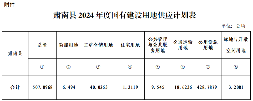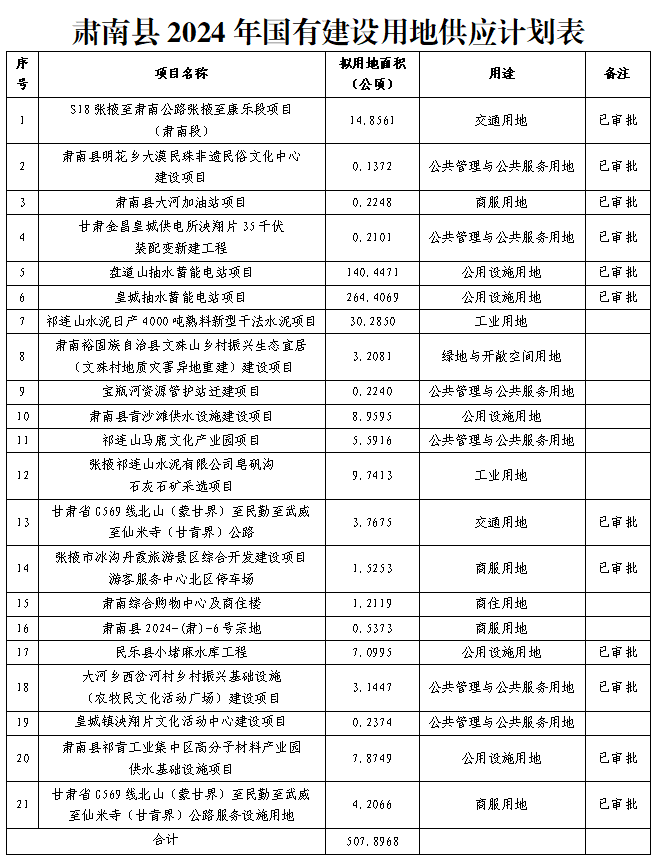 附件:肅南縣2024年度國有建設用地供應計劃表